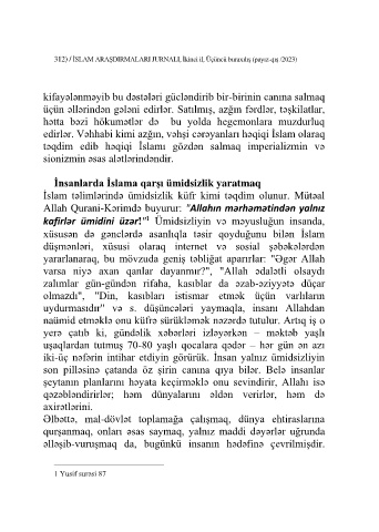 kafirlər ümidini üzər!" Ümidsizliyin və məyusluğun insanda,
