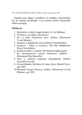 353) / İSLAM ARAŞDIRMALARI JURNALI, Üçüncü il, beşinci sayı (payız-qış / 2024)