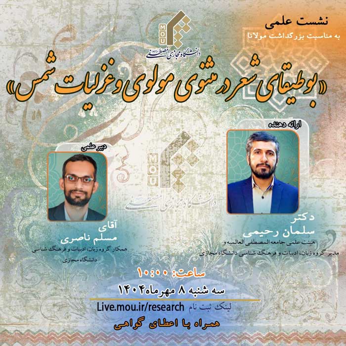 نشست علمی پژوهشی به مناسبت بزرگداشت مولانا با عنوان: بوطیقای شعر در مثنوی مولوی و غزلیات شمس