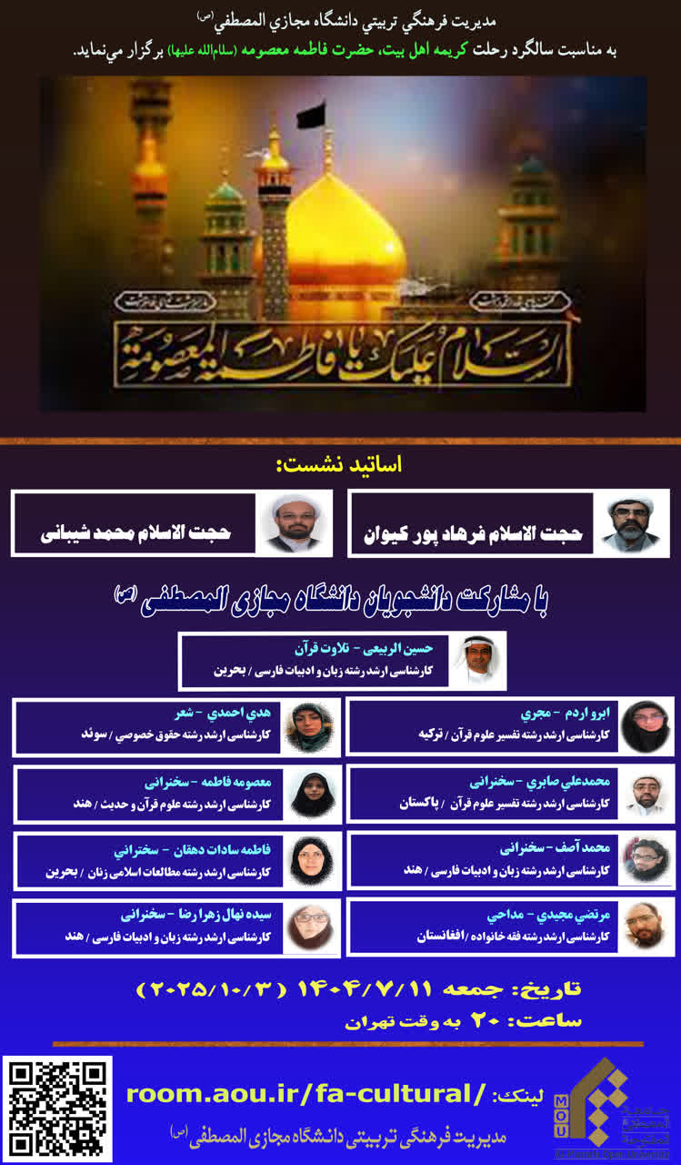 📌مديريت فرهنگي تربيتی دانشگاه مجازی المصطفی(ص) برگزار می‌نمايد.
