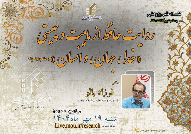 نشست علمی پژوهشی با عنوان: روایت حافظ از ماهیت و چیستی «خدا، جهان، و انسان» در مقام فیلسوف