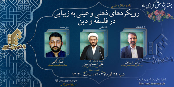 برنامه های هفته پژوهش: نقد و مناظره علمی با عنوان: رویکرد های ذهنی و عینی به زیبایی در فلسفه و دین