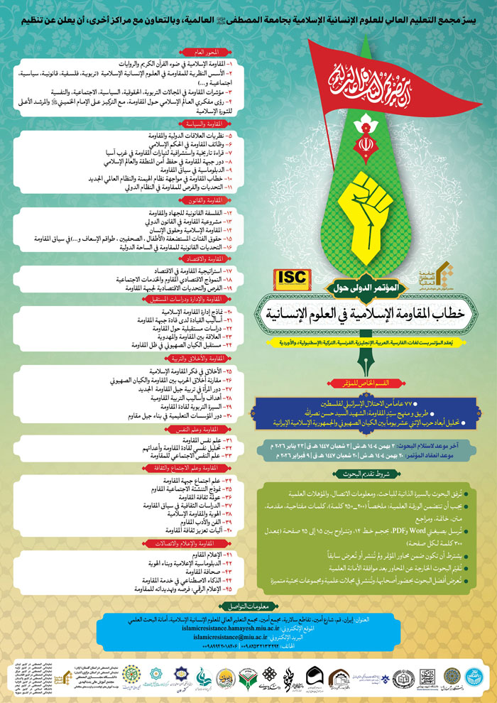المؤتمر الدولي حول خطاب المقاومة الإسلامية في العلوم الإنسانية بست لغات: الفارسية، العربية، الإنجليزية، الفرنسية، التركية، الإسطنبولية والأوردية