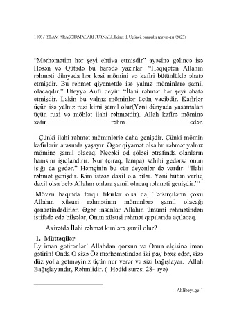 110) / İSLAM ARAŞDIRMALARI JURNALI, İkinci il, Üçüncü buraxılış (payız-qış /2023)