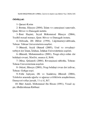 İSLAM ARAŞDIRMALARI JURNALI, Üçüncü il, beşinci sayı (Bahar-Yay / 2024) /105