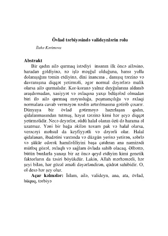 Açar kəlmələr: İslam, ailə, valideyn, ana, ata, övlad,