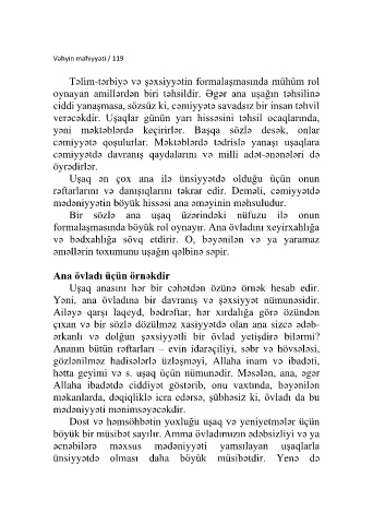 Yəni, ana övladına bir davranış və şəxsiyyət nümunəsidir.