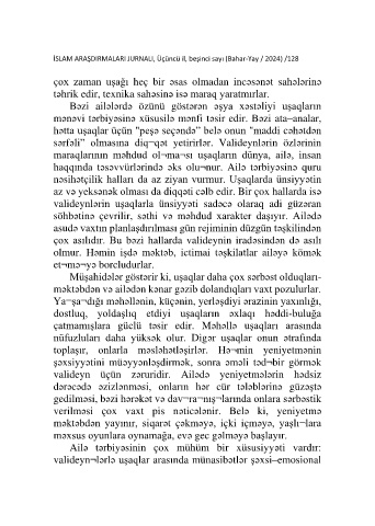 İSLAM ARAŞDIRMALARI JURNALI, Üçüncü il, beşinci sayı (Bahar-Yay / 2024) /128