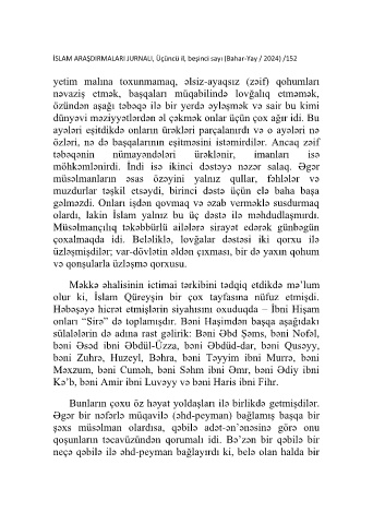 İSLAM ARAŞDIRMALARI JURNALI, Üçüncü il, beşinci sayı (Bahar-Yay / 2024) /152