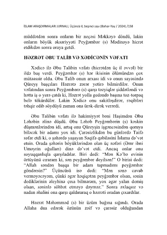 İSLAM ARAŞDIRMALARI JURNALI, Üçüncü il, beşinci sayı (Bahar-Yay / 2024) /158