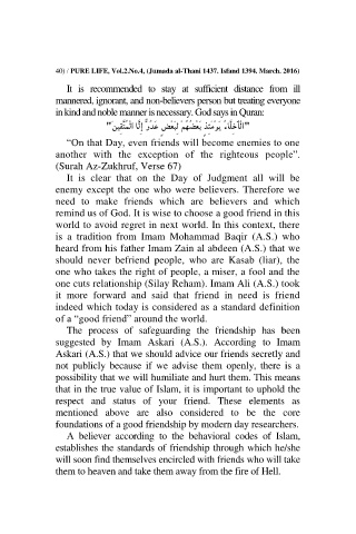 40 PURE LIFE, Vol.2.No.4, (Jumada al-Thani 1437. Isfand 1394. March. 2016)
