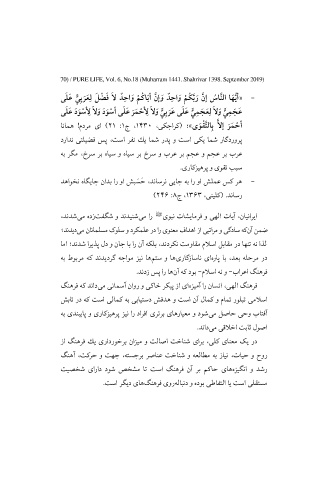 70 PURE LIFE, Vol. 6, No.18 (Muharram 1441. Shahrivar 1398. September 2019)