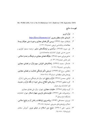 98 PURE LIFE, Vol. 6, No.18 (Muharram 1441. Shahrivar 1398. September 2019)