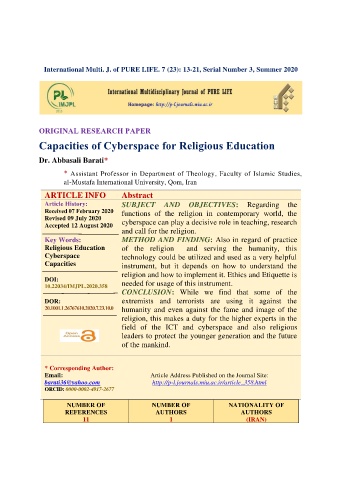 International Multi. J. of PURE LIFE. 7 (23): 13-21, Serial Number 3, Summer 2020