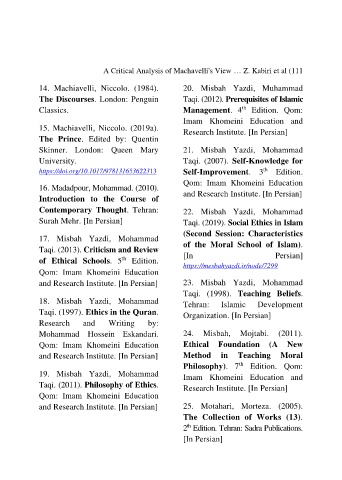 14. Machiavelli, Niccolo. (1984). 20. Misbah Yazdi, Muhammad