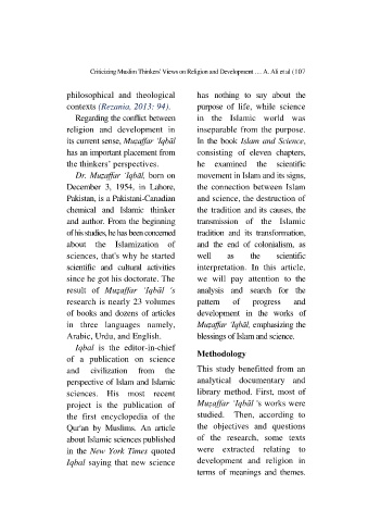 Criticizing Muslim Thinkers' Views on Religion and Development … A. Ali et al (107