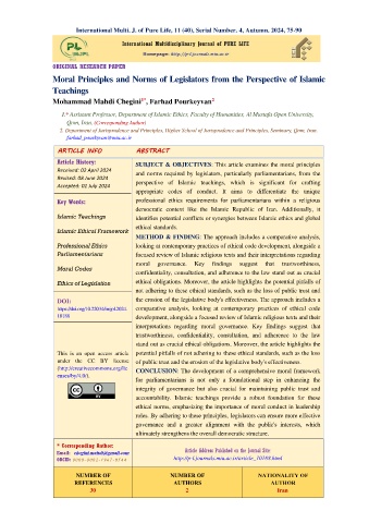 Moral Principles and Norms of Legislators from the Perspective of Islamic