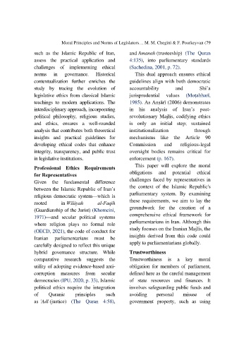 Moral Principles and Norms of Legislators… M. M. Chegini & F. Pourkeyvan (79