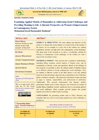 International Multi. J. of Pure Life, 11 (40), Serial Number. 4, Autumn. 2024, 91-108