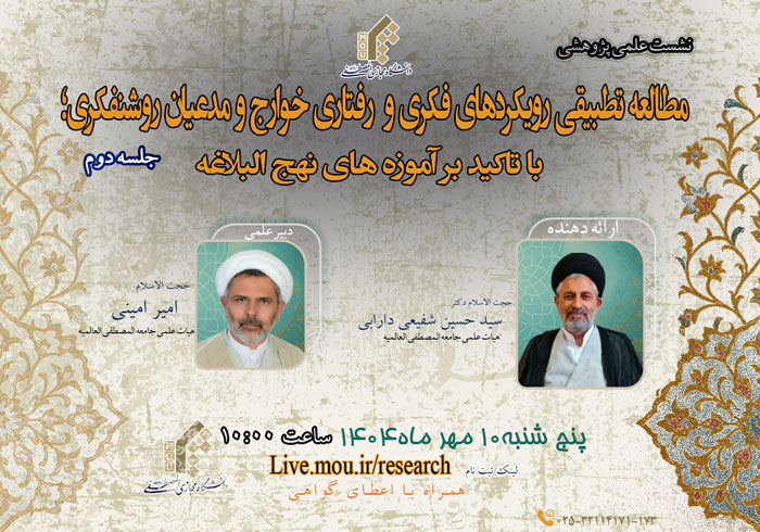 نشست علمی پژوهشی با عنوان: مطالعه تطبیقی رویکردهای فکری و رفتاری خوارج و مدعیان روشنفکری؛ با تاکید بر آموزه های نهج البلاغه (جلسه دوم)