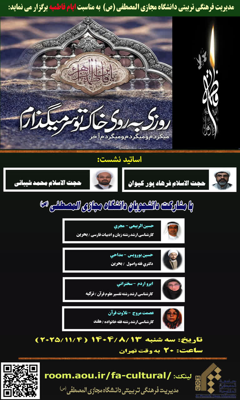 📌مديريت فرهنگی تربيتی دانشگاه مجازي المصطفی(ص) به مناسبت ایام فاطمیه برگزار مي‌نمايد:
